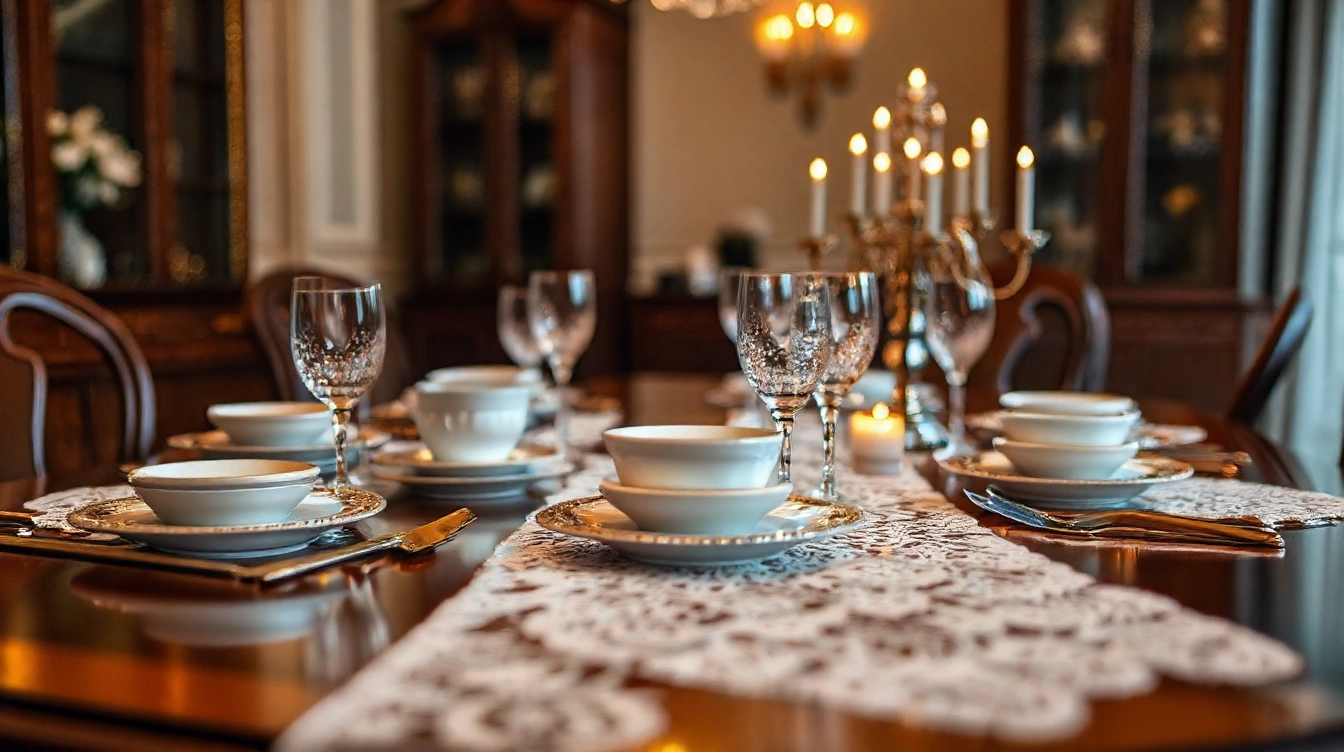Lors des dîners formels, le chemin de table joue un rôle décoratif central. Les styles chemins de table en tissu naturel tels que le lin ou la toile de jute offrent une esthétique à la fois élégante et chaleureuse, idéale pour accompagner des repas de fêtes traditionnels. Le choix des couleurs doit rester sobre, privilégiant des tons neutres ou métallisés pour souligner le côté officiel de la soirée. Vous pouvez compléter avec des accessoires comme des porte-serviettes ou des bougies pour une décoration complète et sophistiquée.